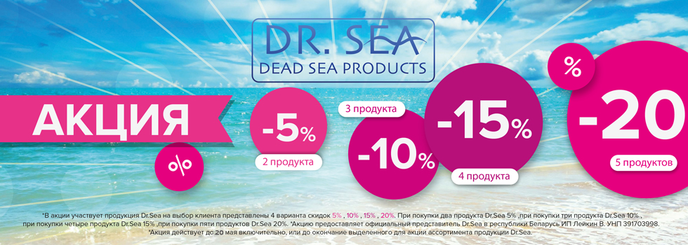И при покупке 5 единиц, общая скидка с чека Dr.Sea составит 20% !!!
